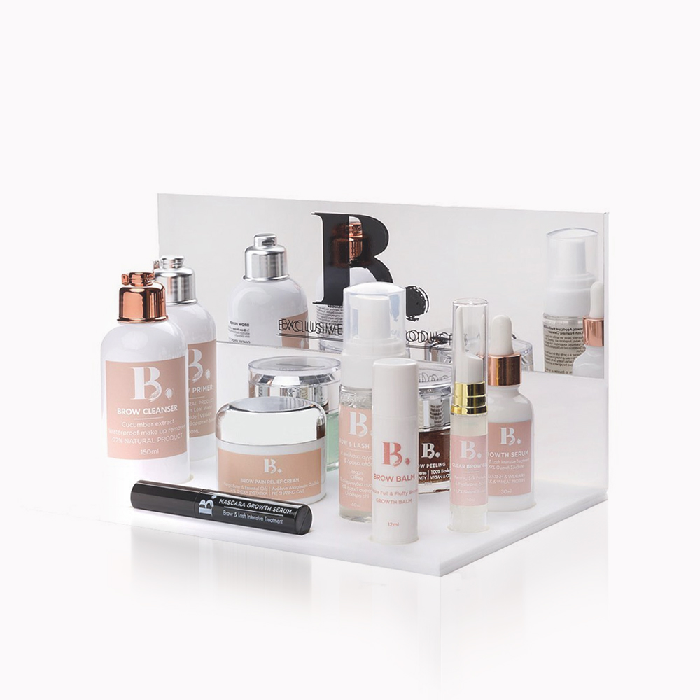 Το Product Display Stand της Β. είναι το ιδανικό stand για όλους τους επαγγελματίες φρυδιών. Κατάλληλο να τοποθετηθεί στον πάγκο εργασίας για εύκολη χρήση ενώ παράλληλα προσδίδει επαγγελματισμό στην εικόνα σου.